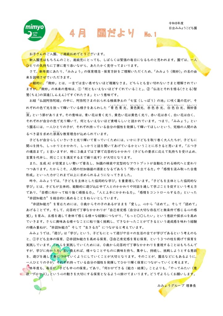 令和8年4月 園だより①